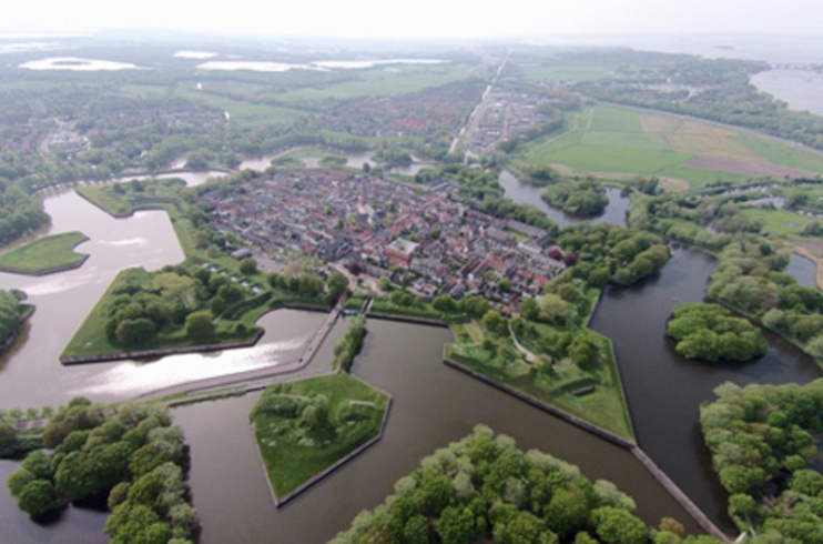 Vojenská pevnost Bourtange je obehnaná vodními příkopy a travnatými hradbami ve tvaru pěticípých hvězd. ...