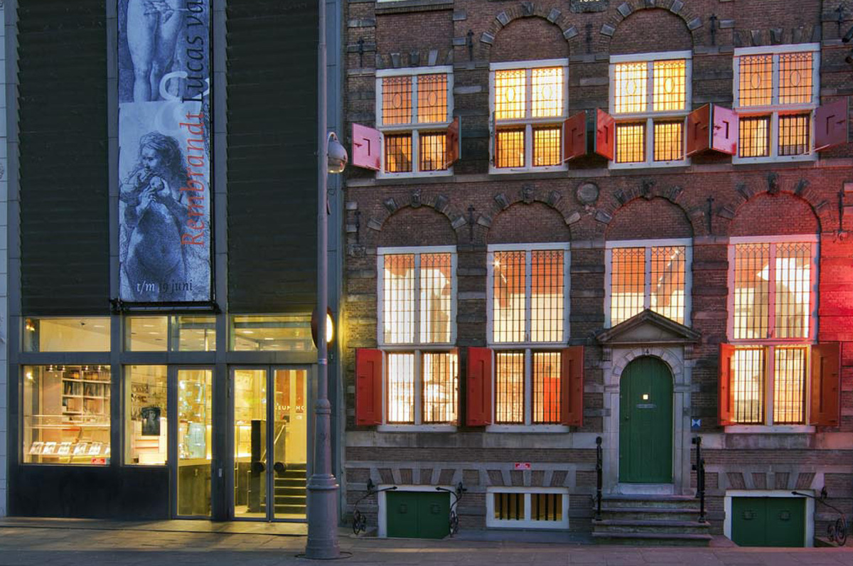 V moderní části domu pak vystavují Rembrandtovy lepty, kterých vytvořil na 250, ale vzhledem k malým prostorům se tematický točí ve vitrínách 20 až 100 obrazů. Dále si pak můžete prohlédnout díla Rembrandtových žáků. Zajímavostí je, že v celém muzeu najdete jen čtyři olejomalby od Rembrandta.